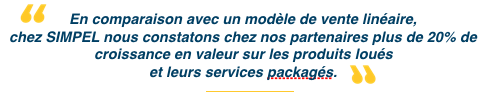 C’est donc partant du besoin des utilisateurs, que ce soit des particuliers ou des professionnels, que SIMPEL intègre dans votre offre de location longue durée, en plus d’un produit durable, des accessoires, des services de proximité et des contenus qui garantissent l’usage, nourrissent l’expérience utilisateur, prolongent la durée de vie des équipements, et maximisent la rentabilité comme votre fidélisation client.